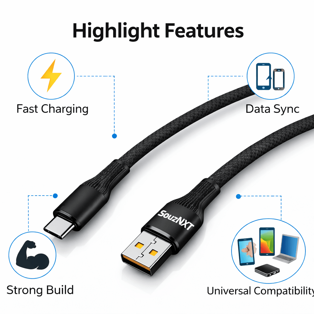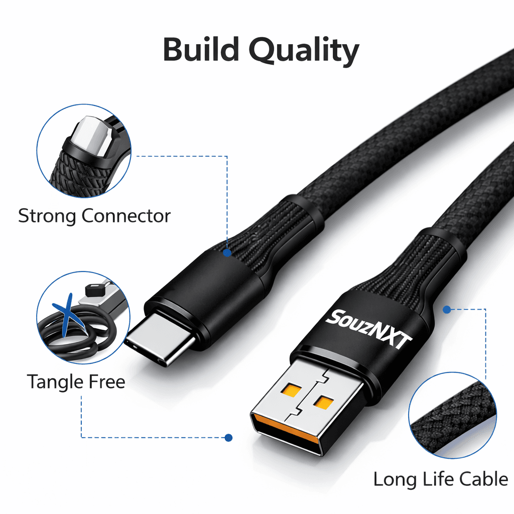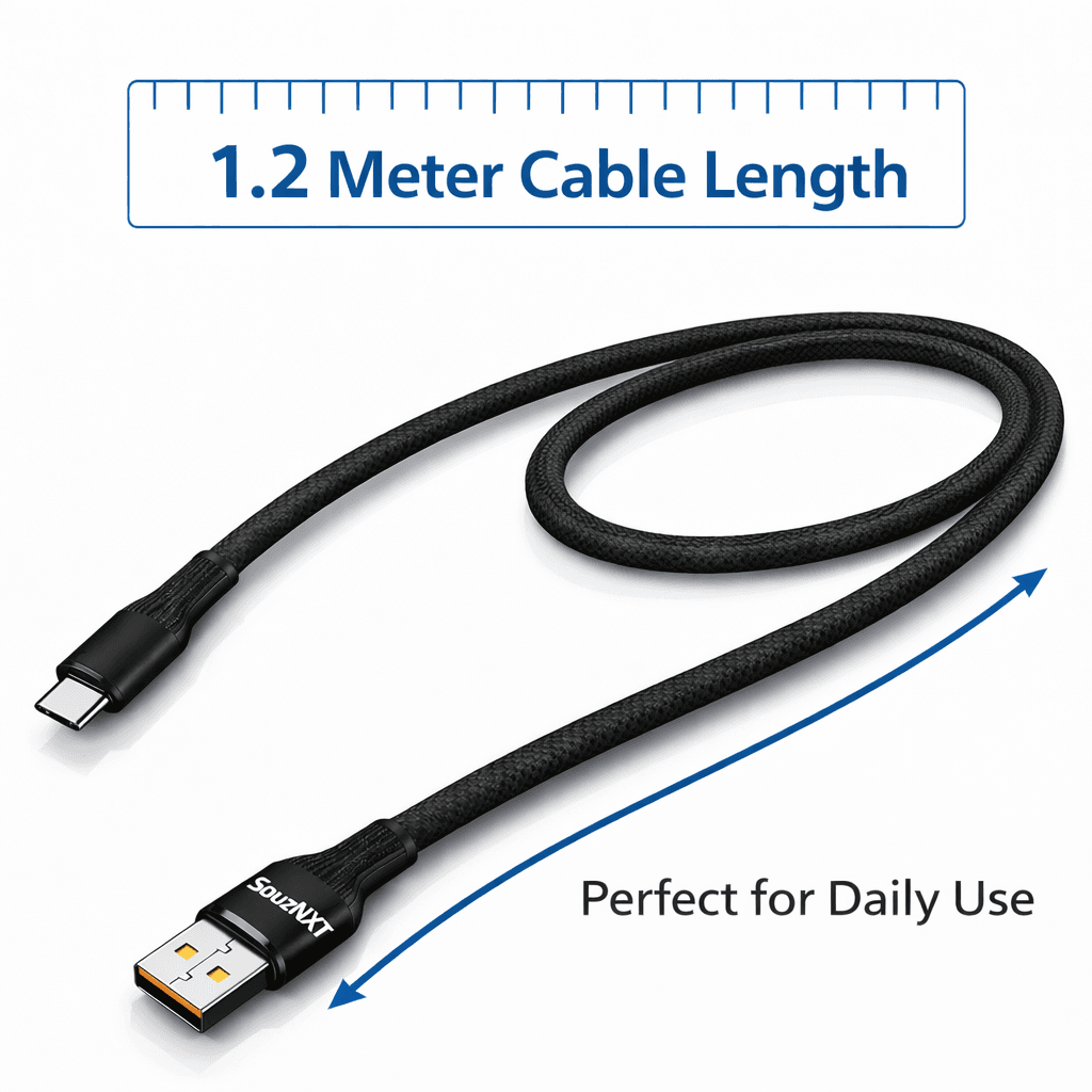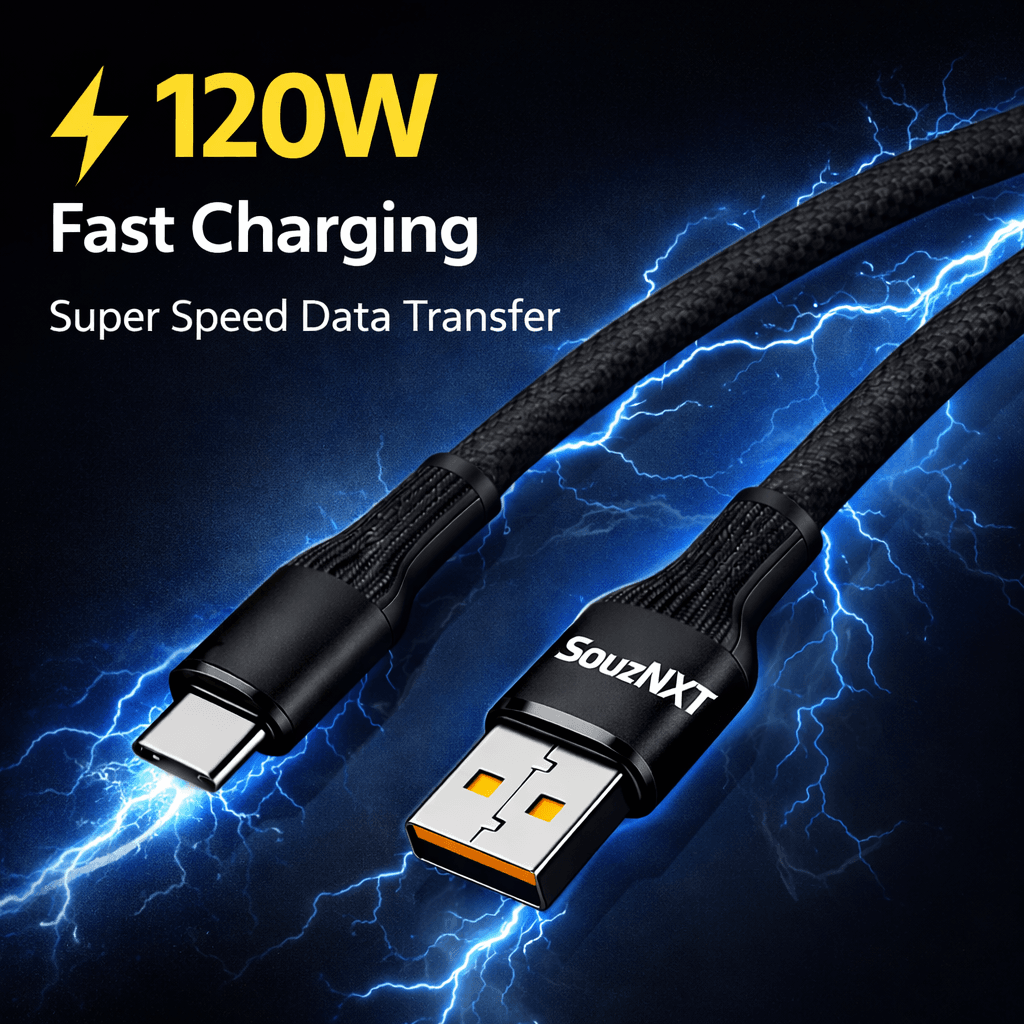 Upgrade your charging experience with the SouzNXT 120W Fast Charging USB to Type-C Cable, engineered for speed, durability, and reliability. Whether you’re charging your smartphone, tablet, or powering your devices on the go, this cable delivers exceptional performance every time.