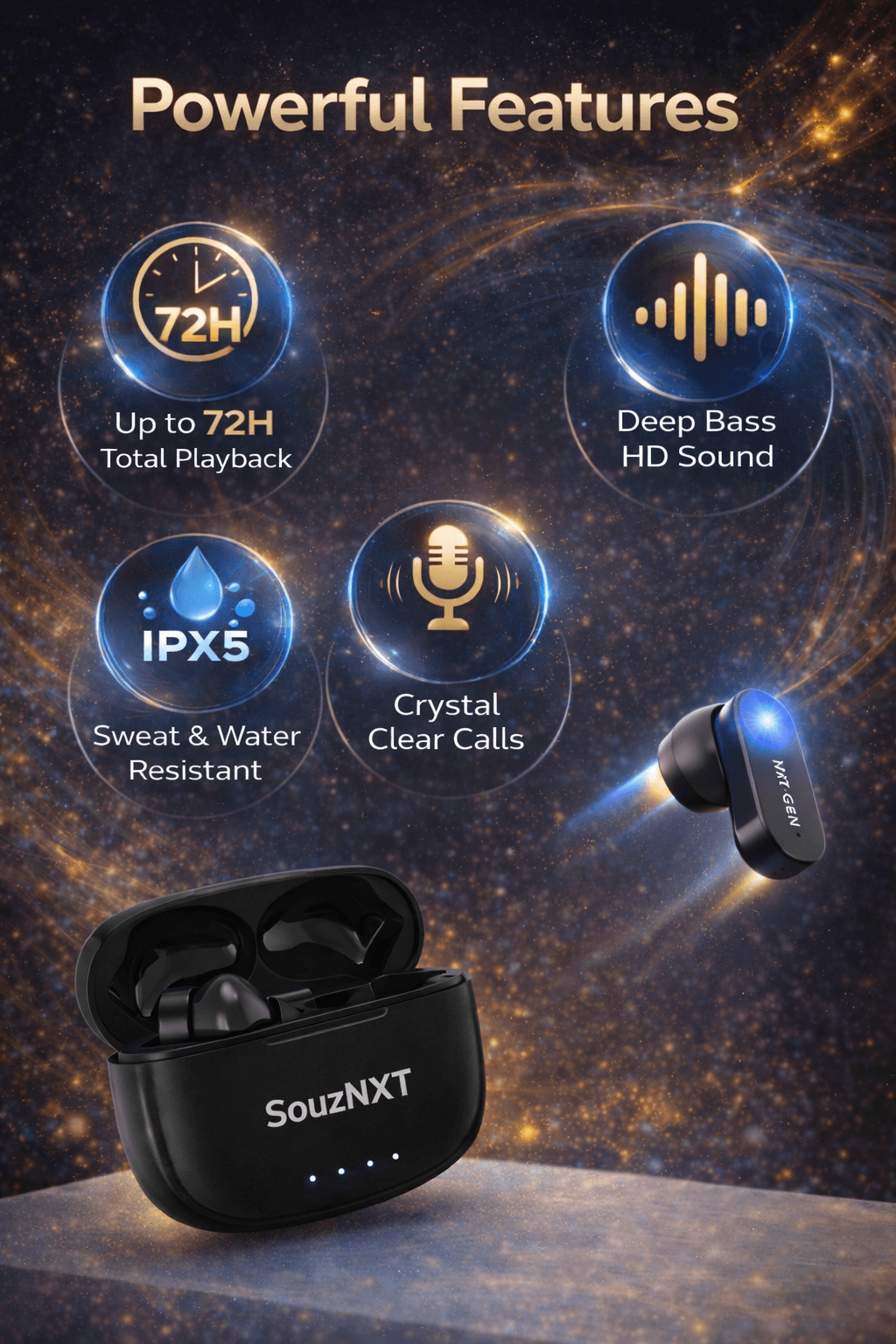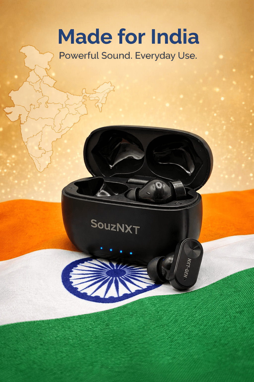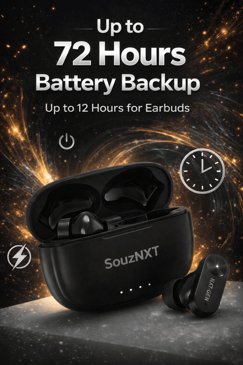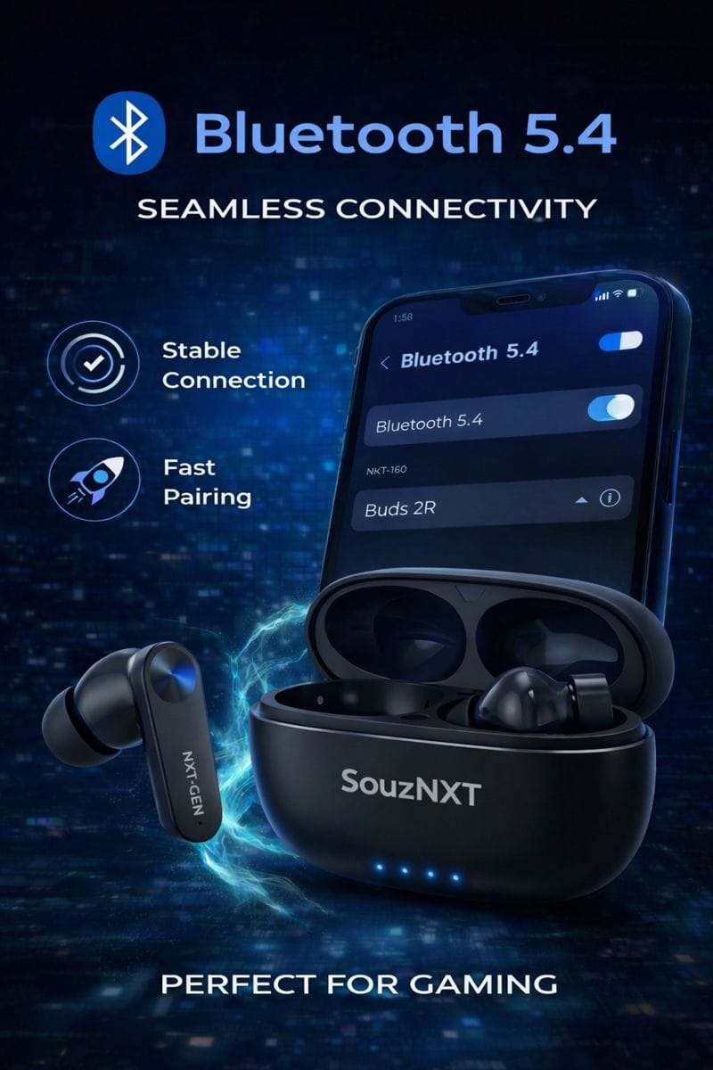 Step into the future of wireless audio with the SouzNXT NXT Gen TWS Earbuds, designed to deliver powerful sound, extended battery life, and seamless connectivity for your everyday needs.